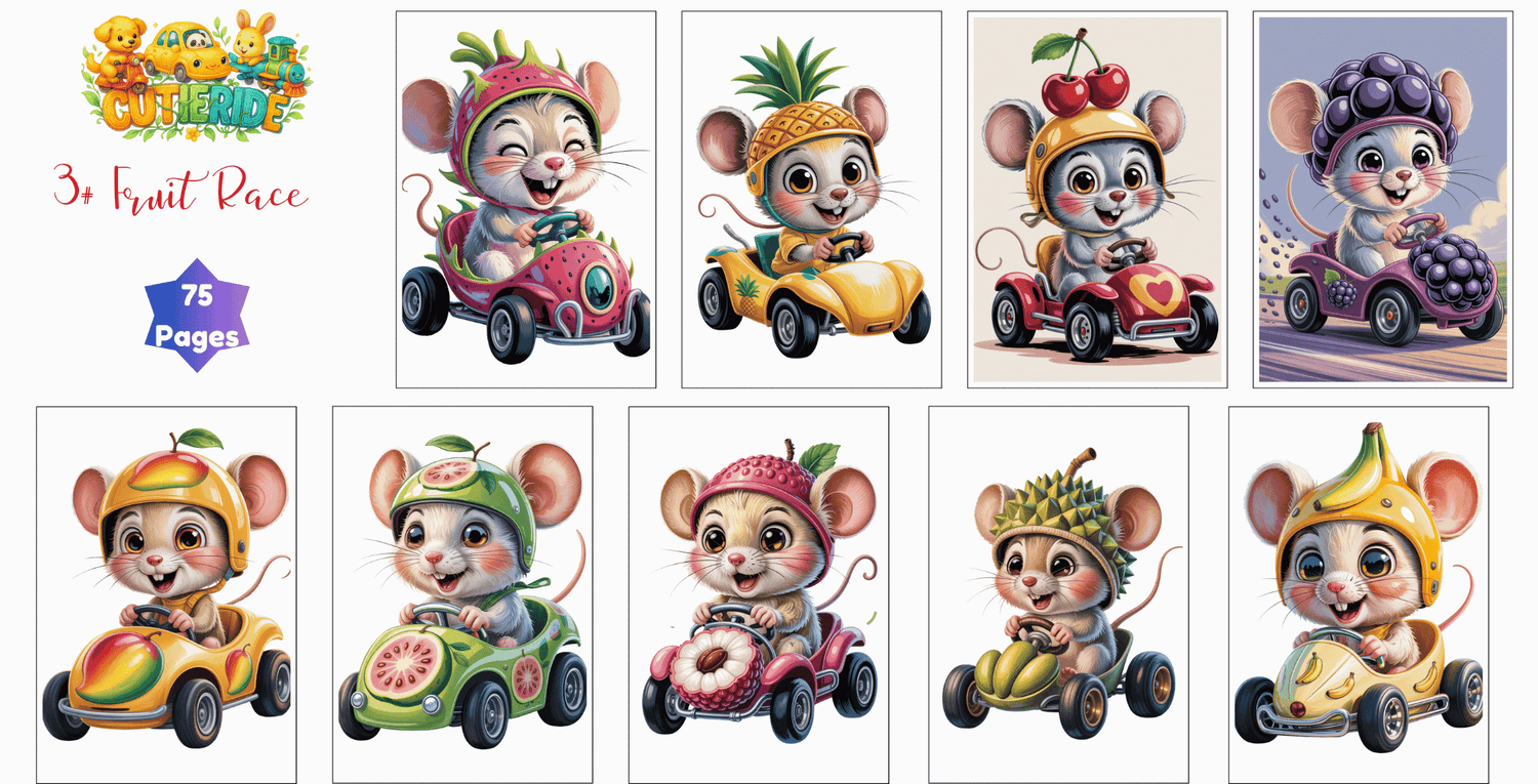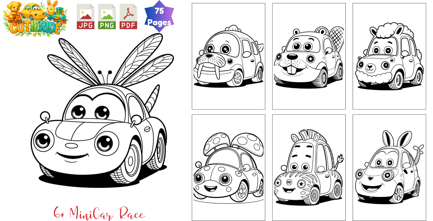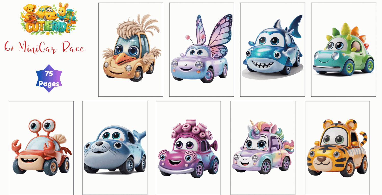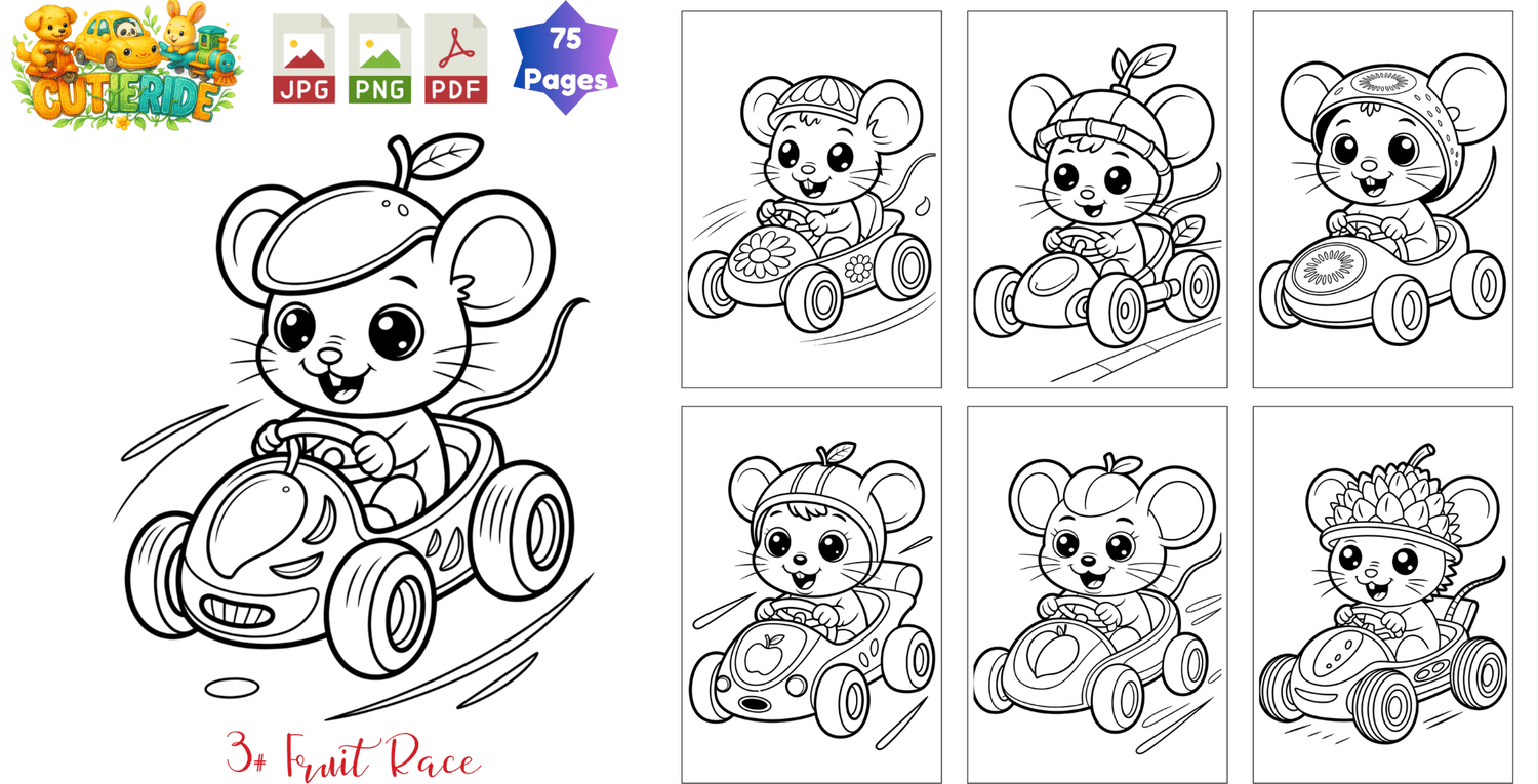 600+ CutieRide Coloring Pages Across 8 Adorable Themes, 3 File Formats Included! (JPG, PNG, PDF)