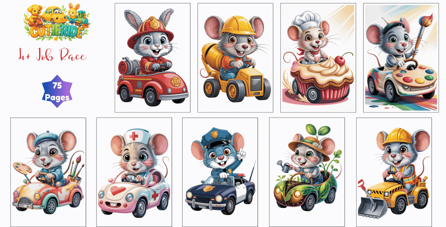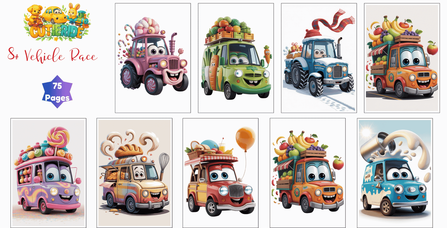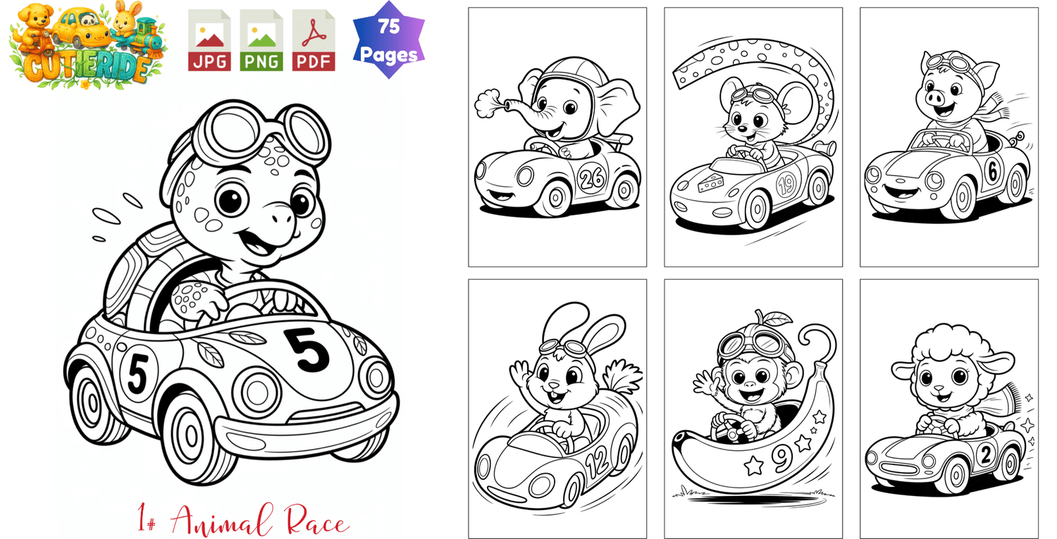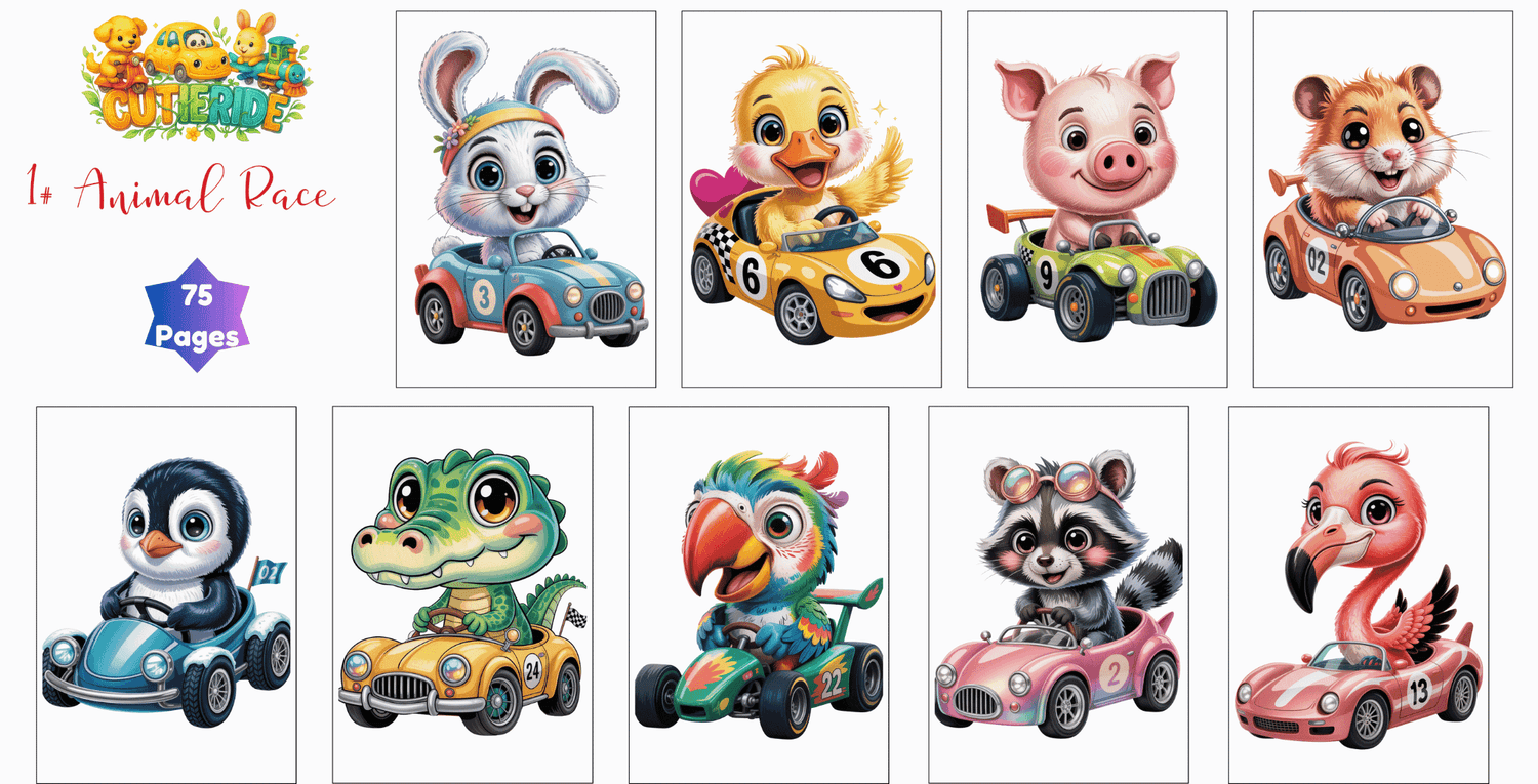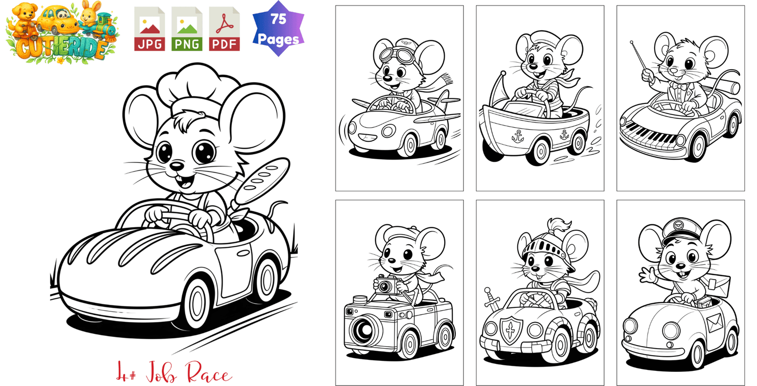 600+ CutieRide Coloring Pages Across 8 Adorable Themes, 3 File Formats Included! (JPG, PNG, PDF)