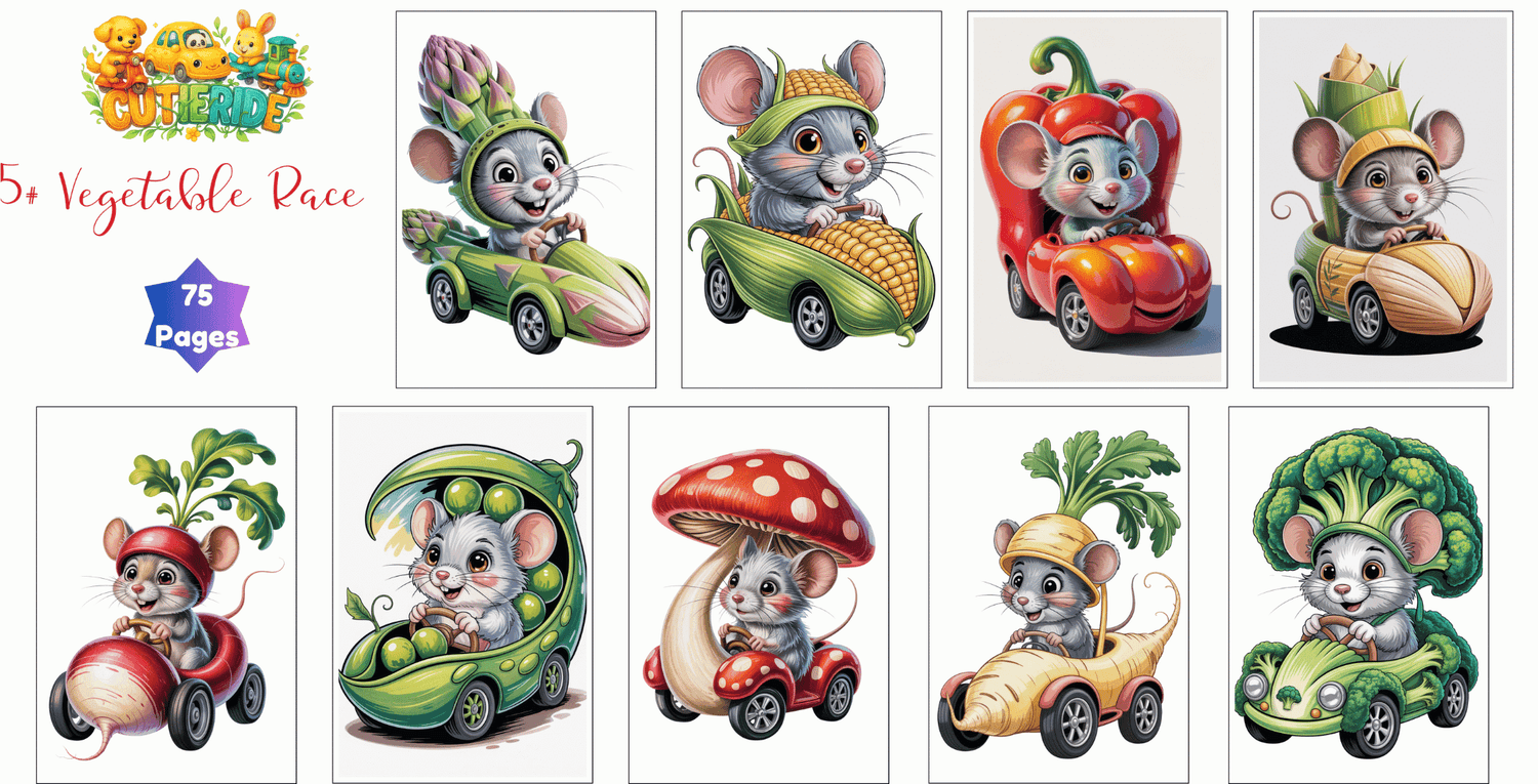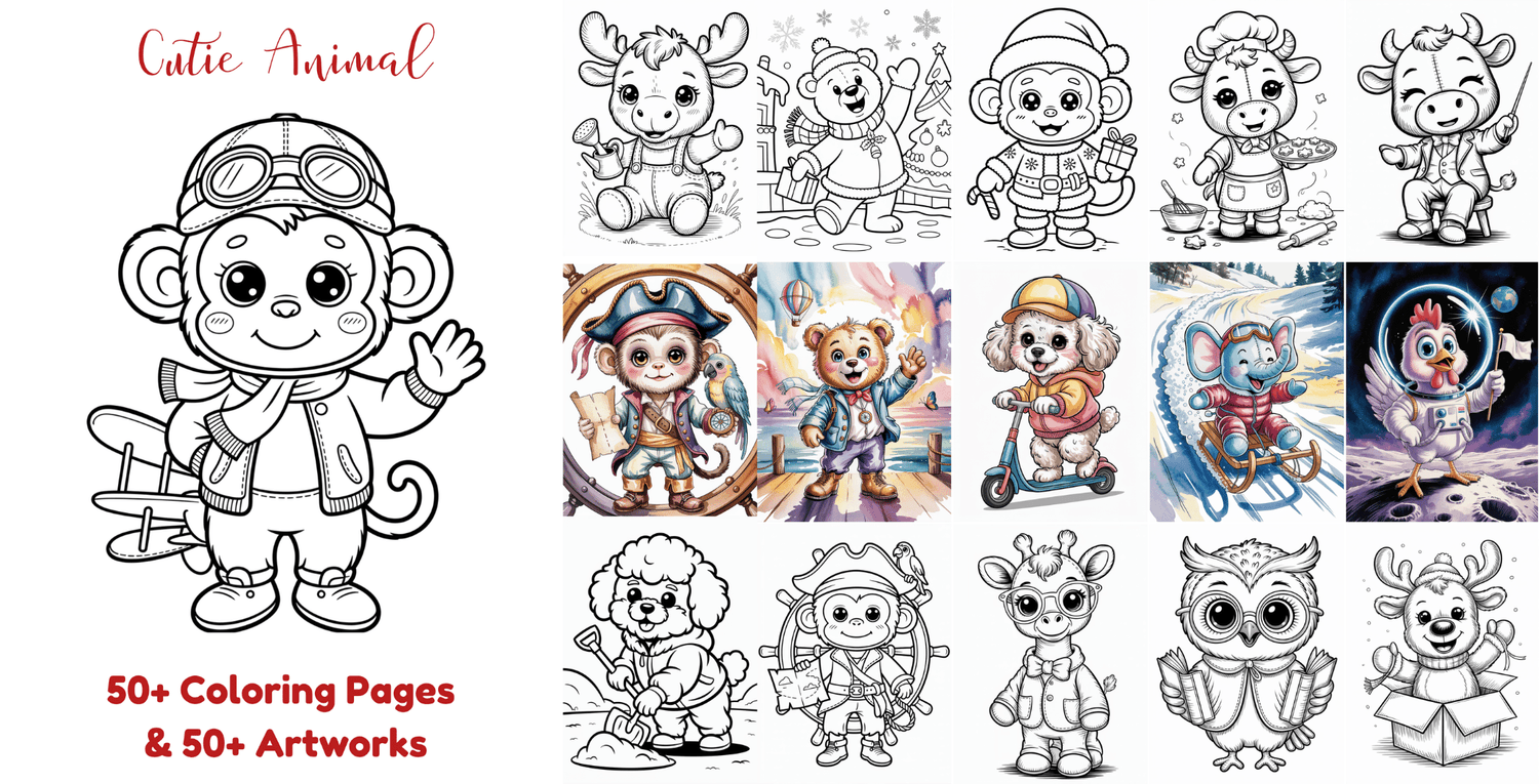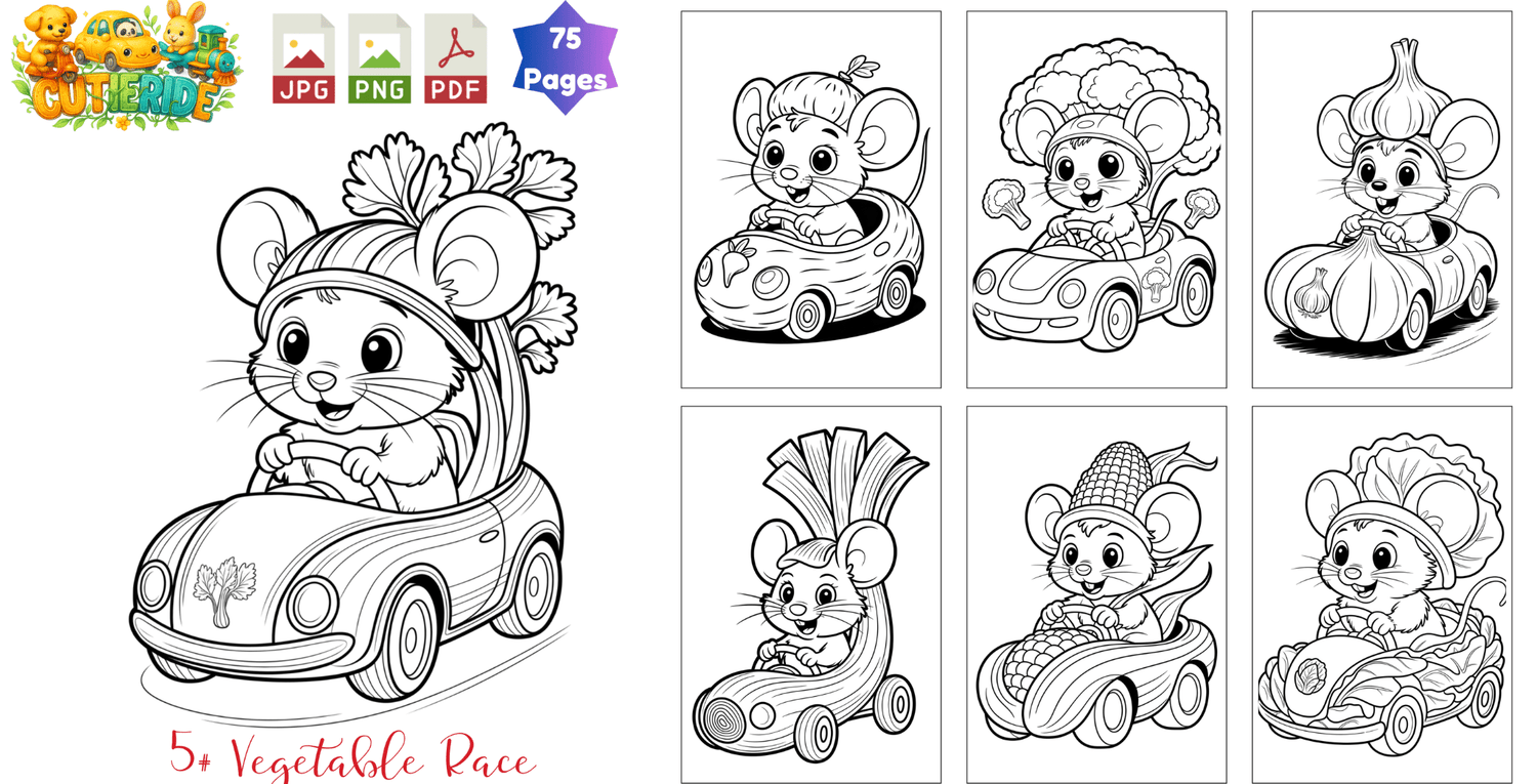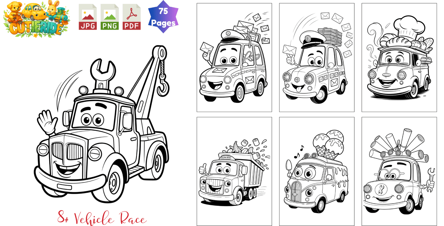 600+ CutieRide Coloring Pages Across 8 Adorable Themes, 3 File Formats Included! (JPG, PNG, PDF)