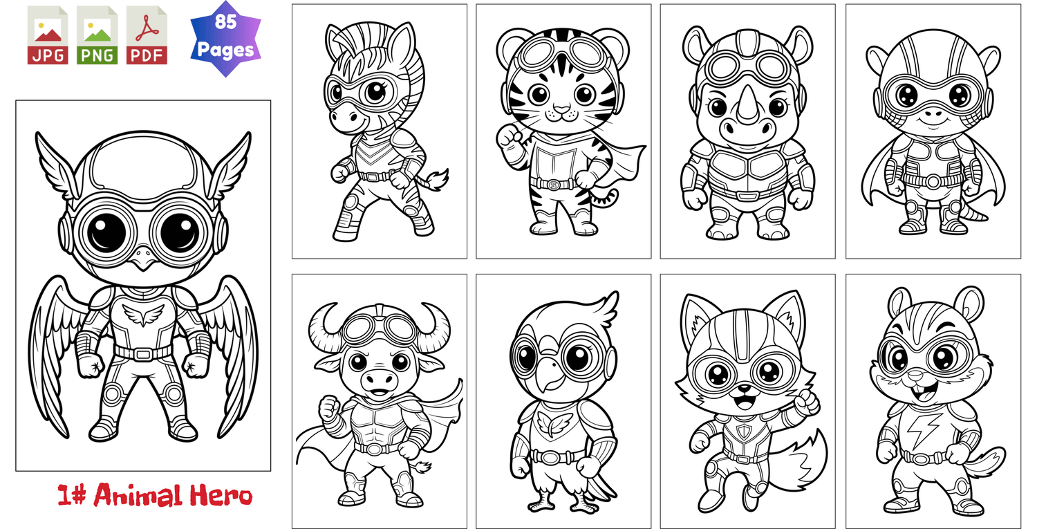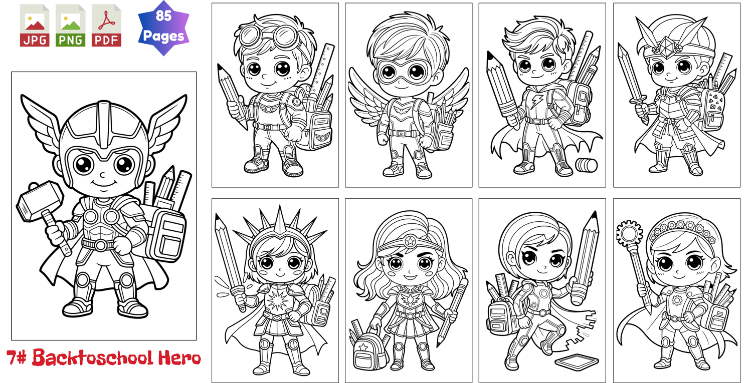 600+ Ready-to-Use Coloring Pages: A complete multi-theme hero library featuring animals, fantasy heroes, school themes, and creative characters. Clean outlines. Kid-safe designs.