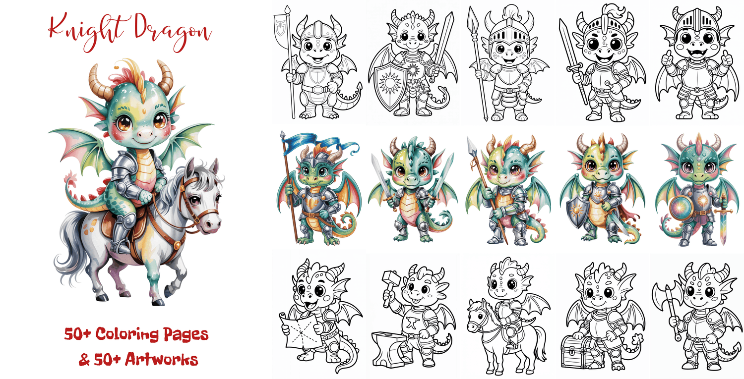 100+ Coloring & Art Pages - Knight Dragon