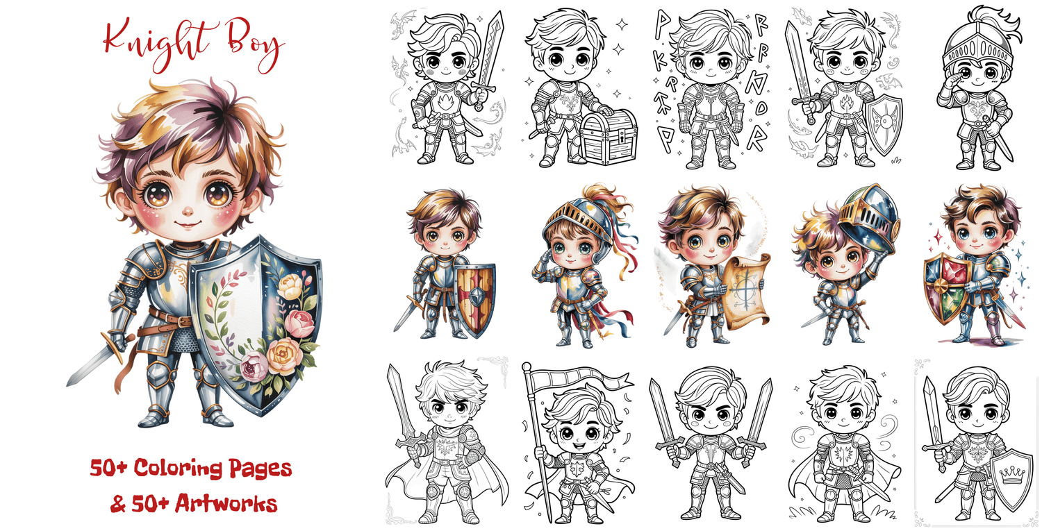 100+ Coloring & Art Pages - Knight Boy